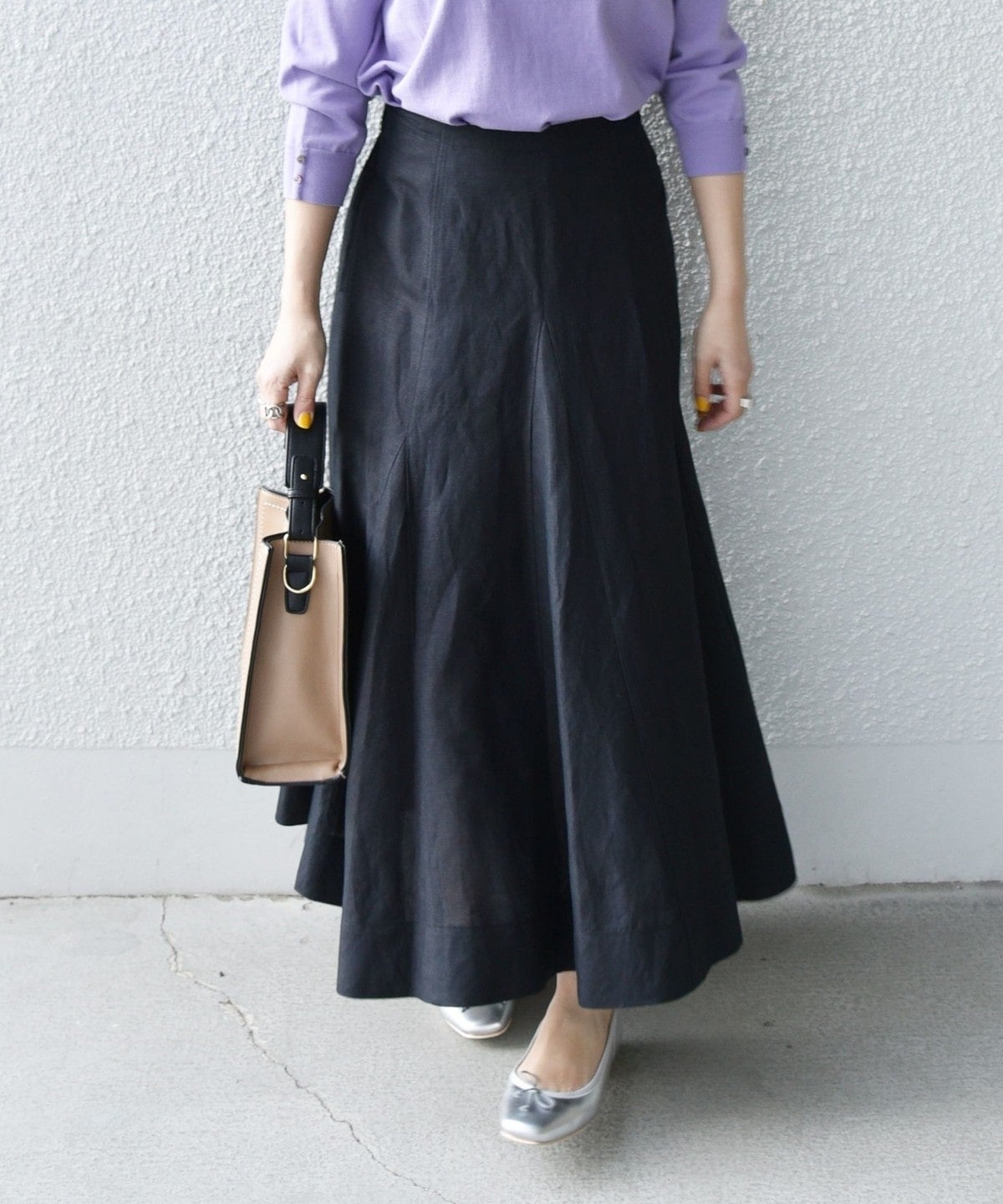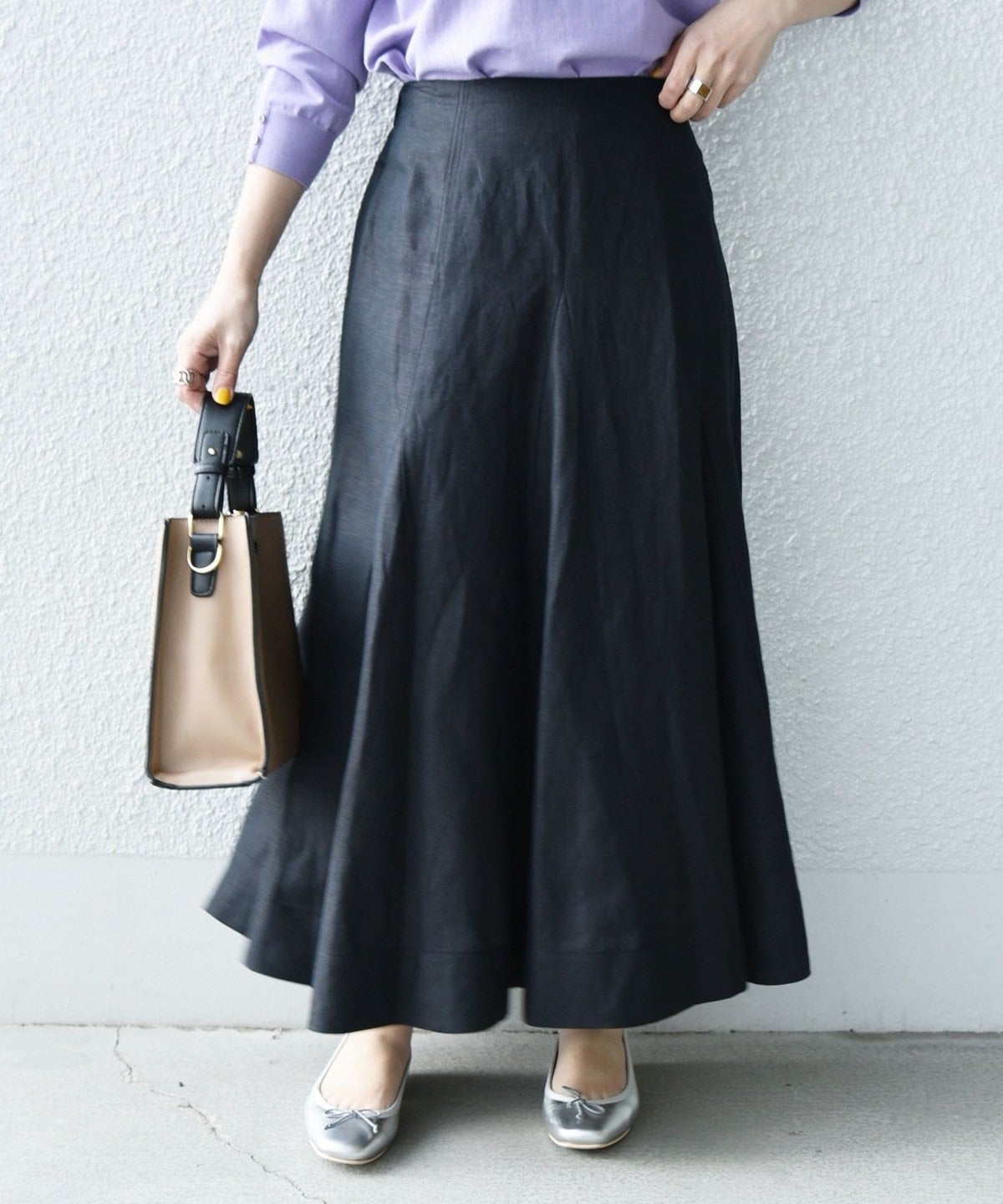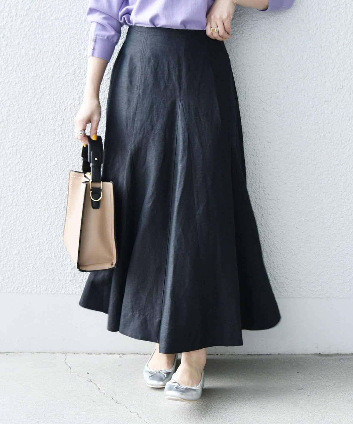 動くたび揺れる裾がかわいらしく、女性らしい雰囲気に仕上がります。