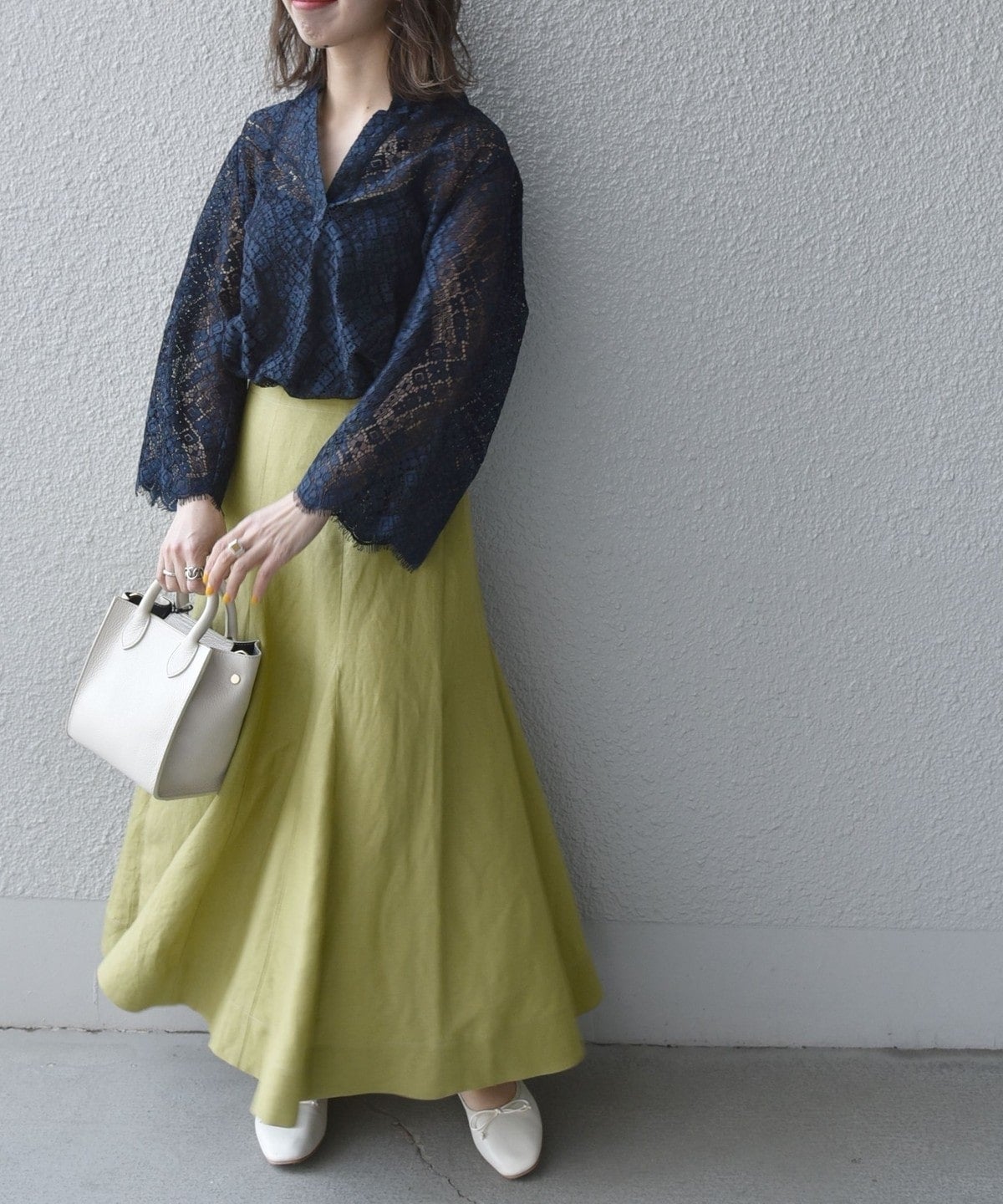 動くたび揺れる裾がかわいらしく、女性らしい雰囲気に仕上がります。