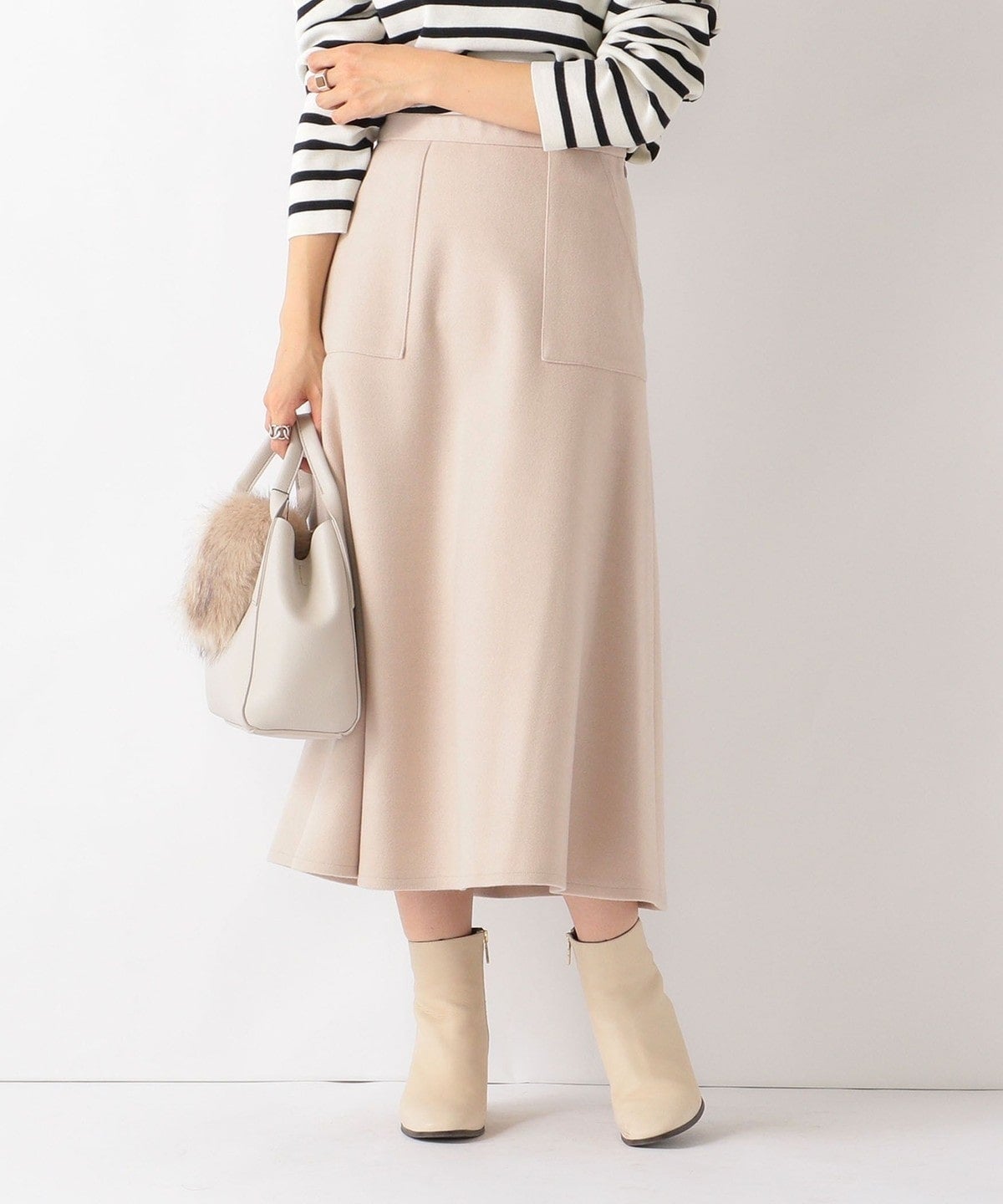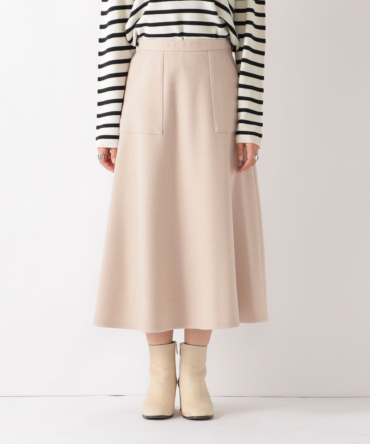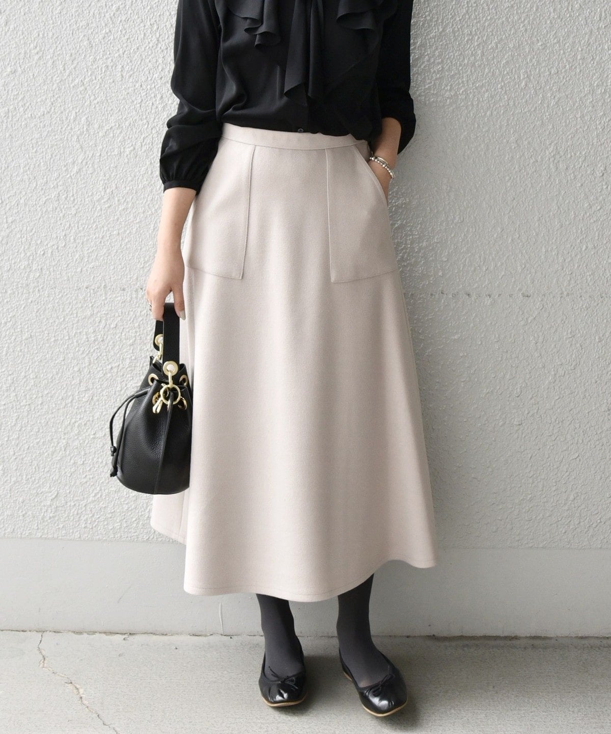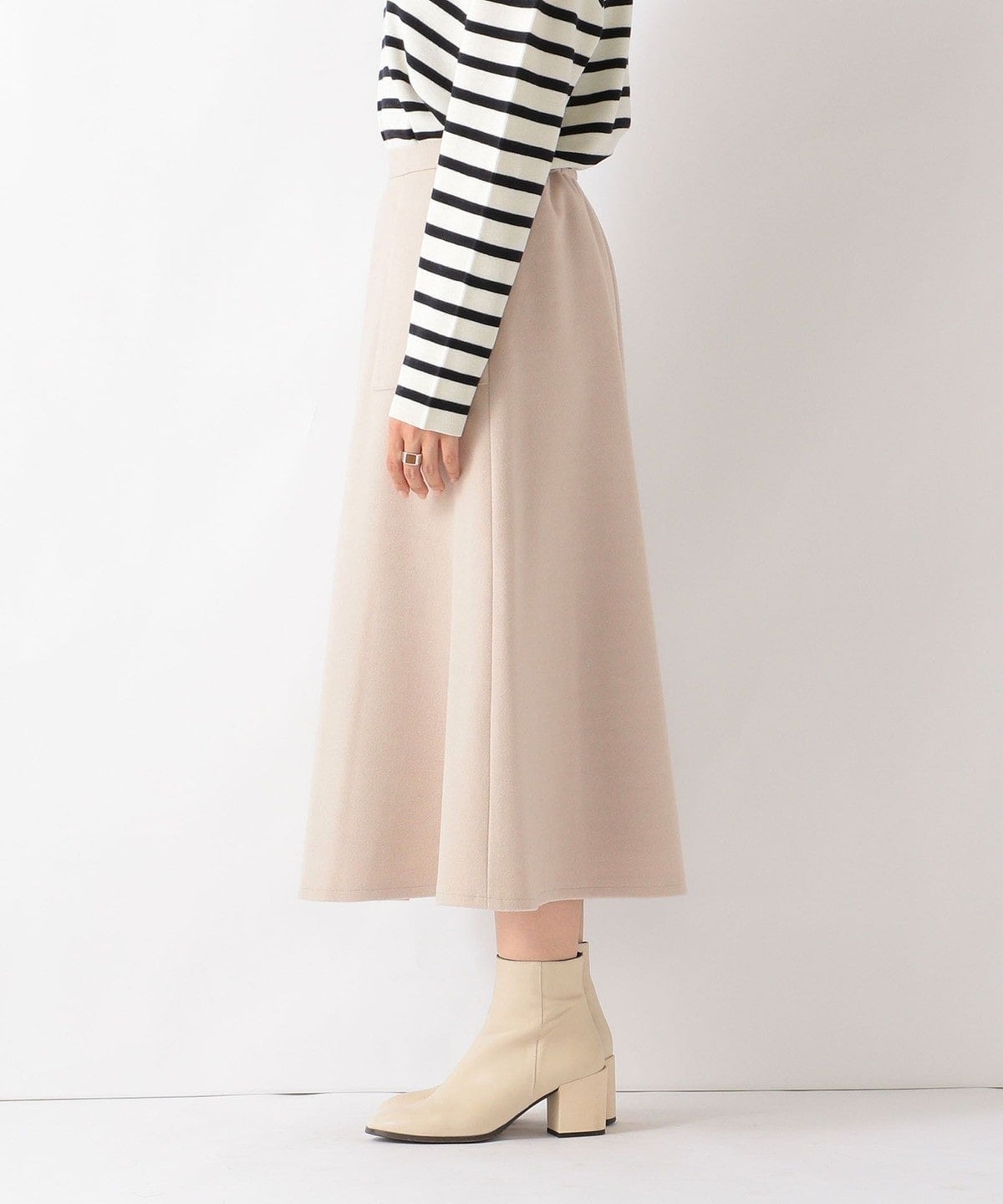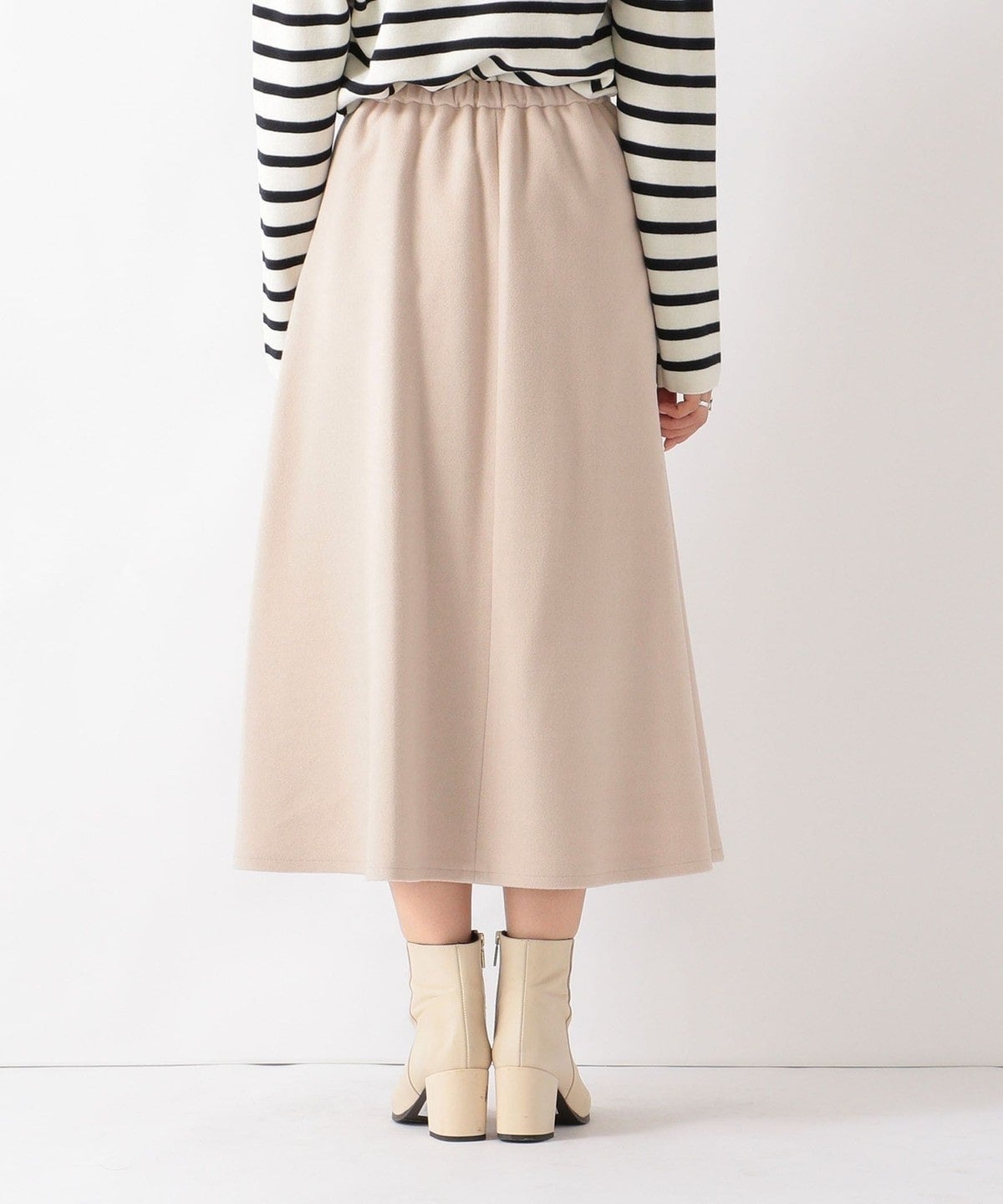 フェルト感触の素材と淡いカラーが冬に映える、ジャージメルトンスカート。