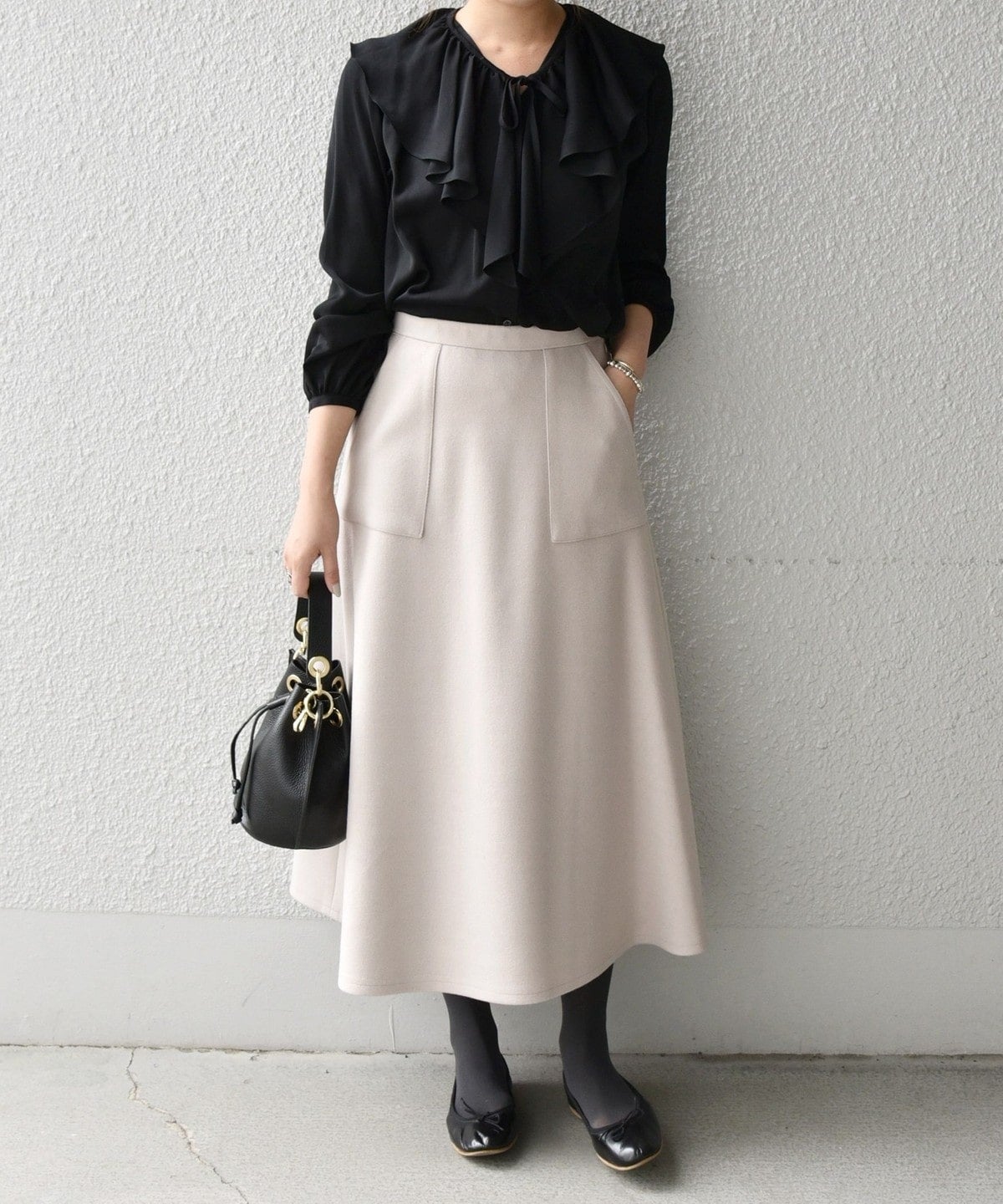 コメント:裾まわりのシルエットが女性らしく上品なスカートです。