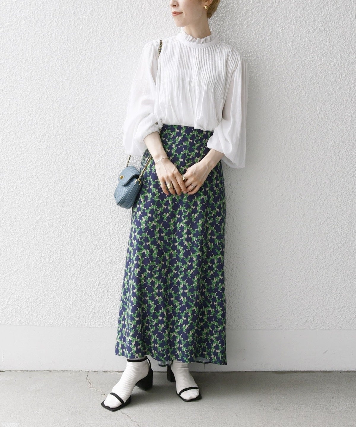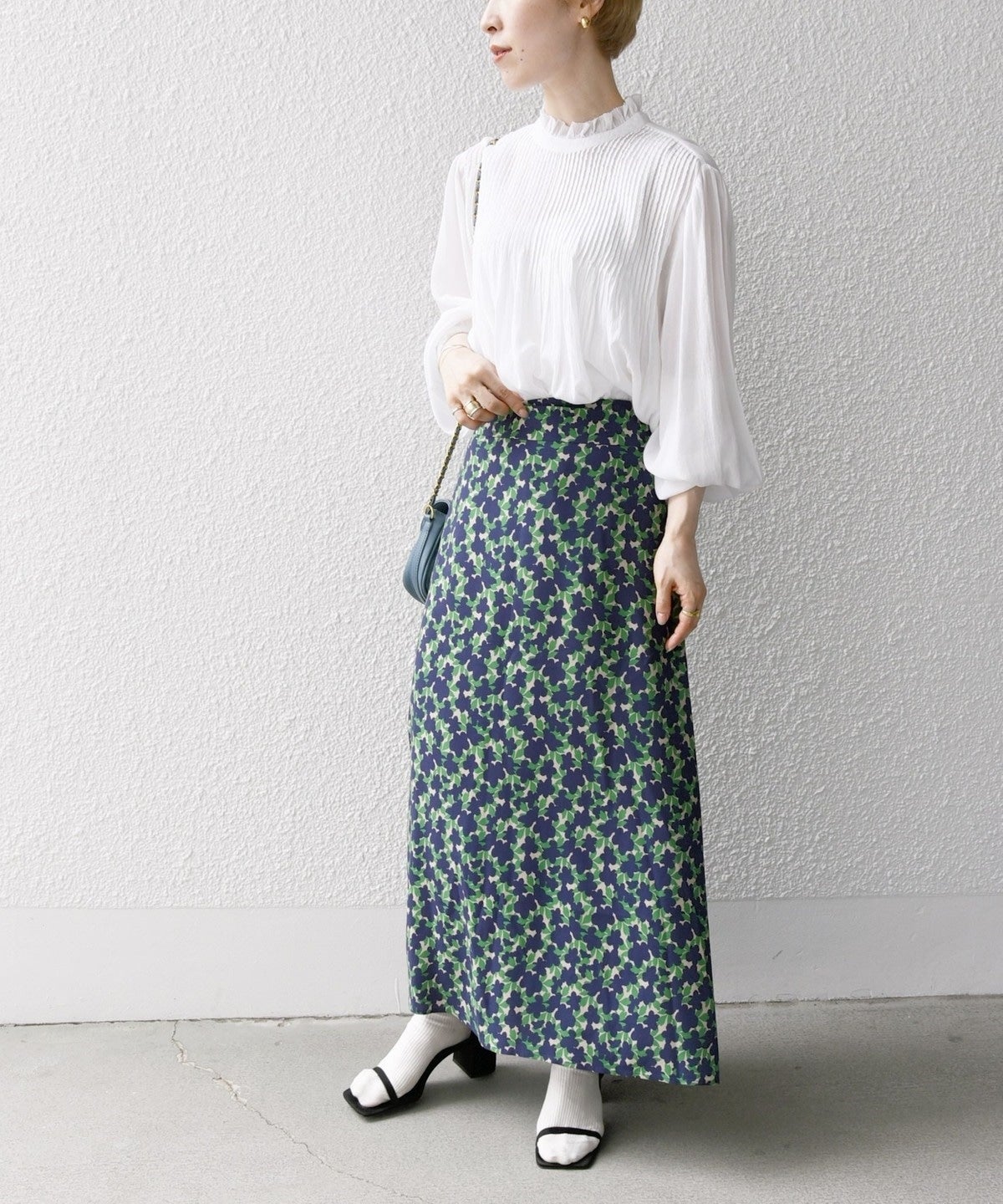 主張のあるプリントなのでフロントは大人っぽいシンプルなAラインに。