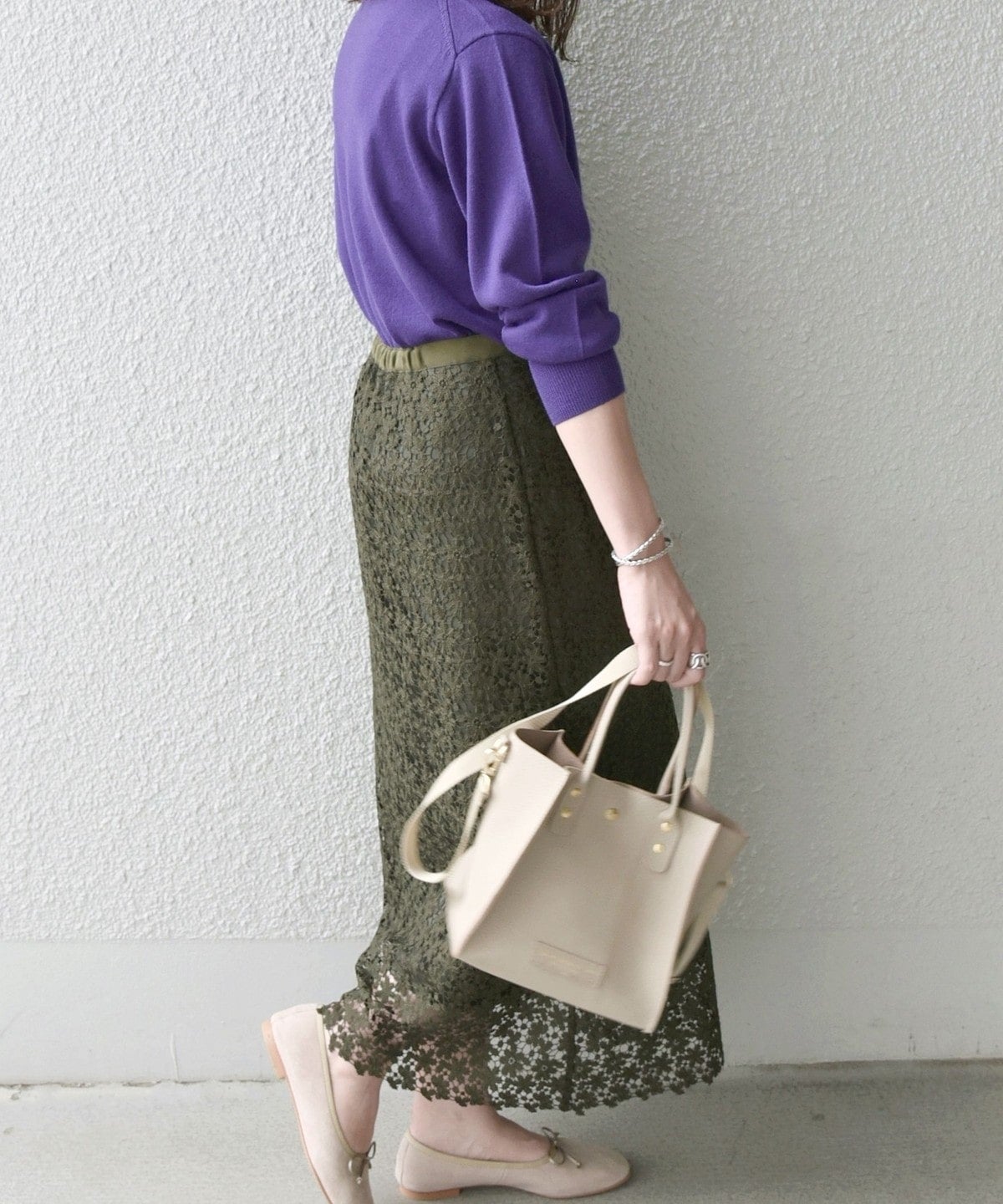 ボーダーと合わせてフレンチライクにコーディネートしたり、ざっくりニットと素材のコントラストを楽しむのもオススメ。