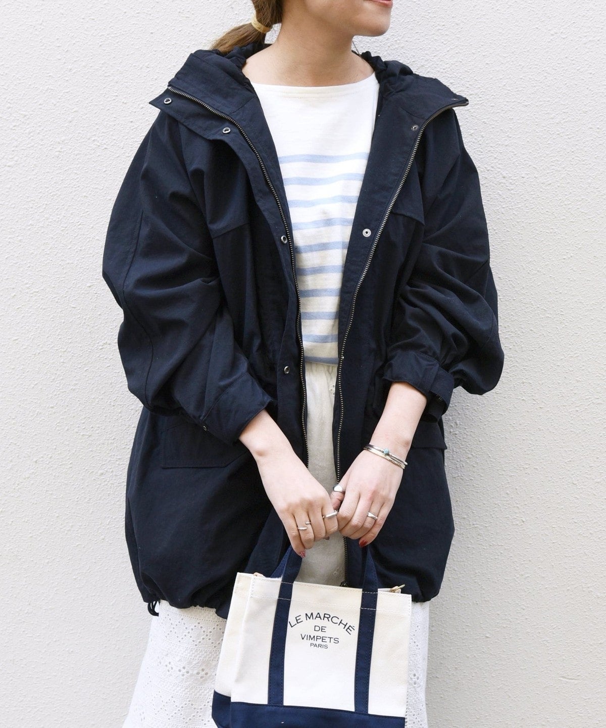 ドロストを絞ってなりたいスタイルを作れるフーディーブルゾン。