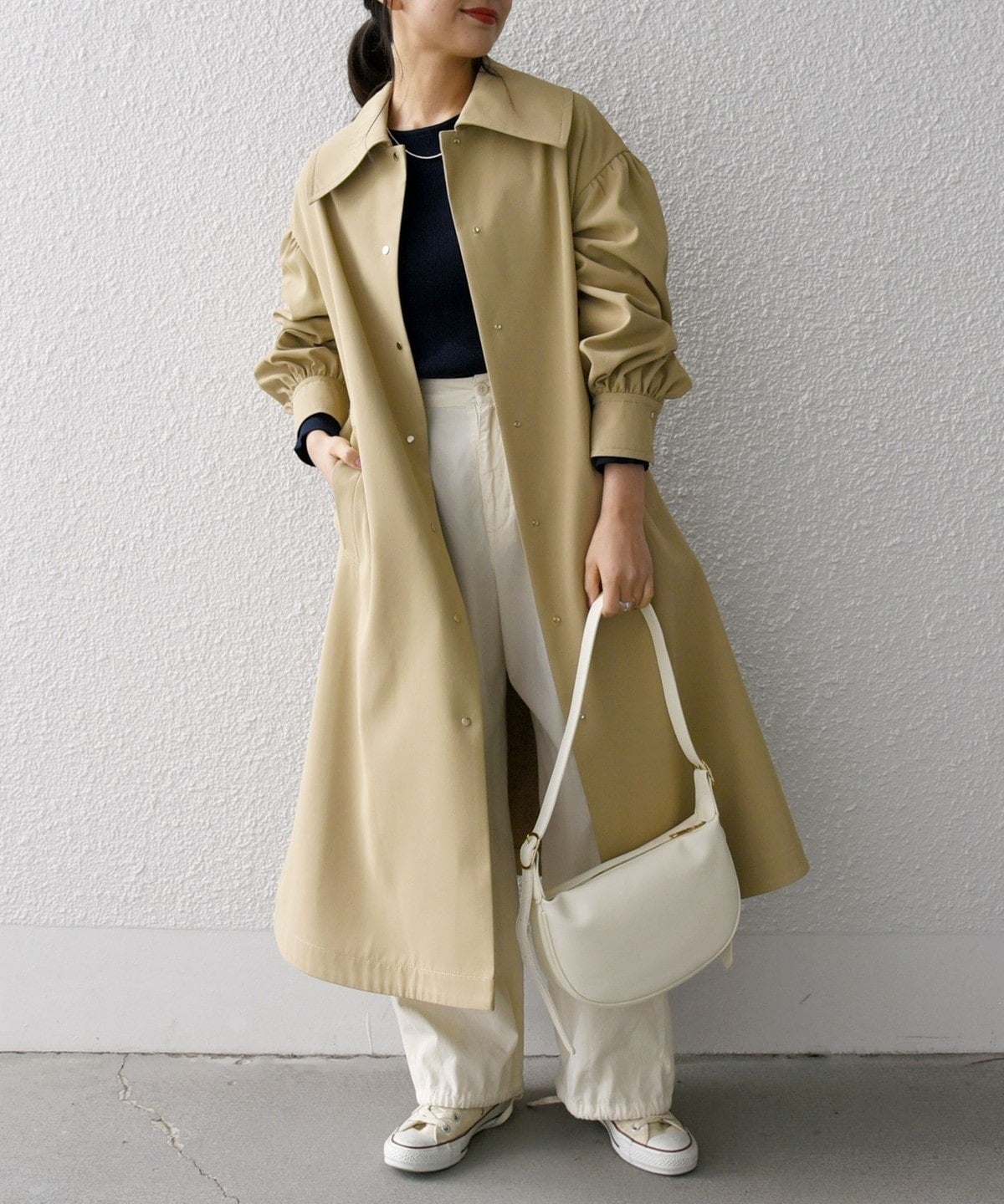 普段使いから、通勤やオフィスカジュアルまで幅広いシーンで活躍するステンカラーコート!