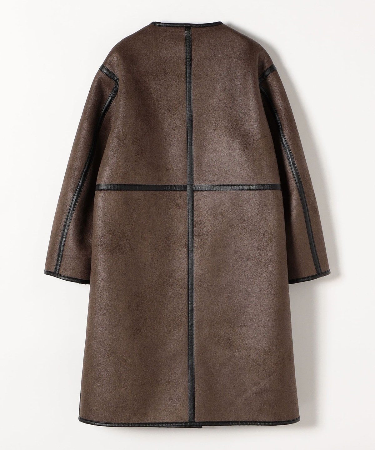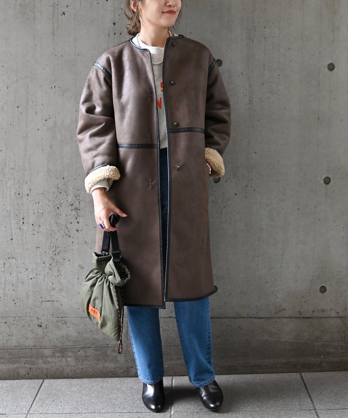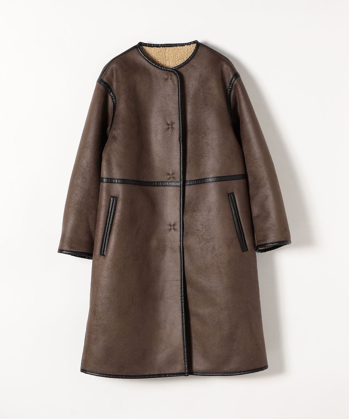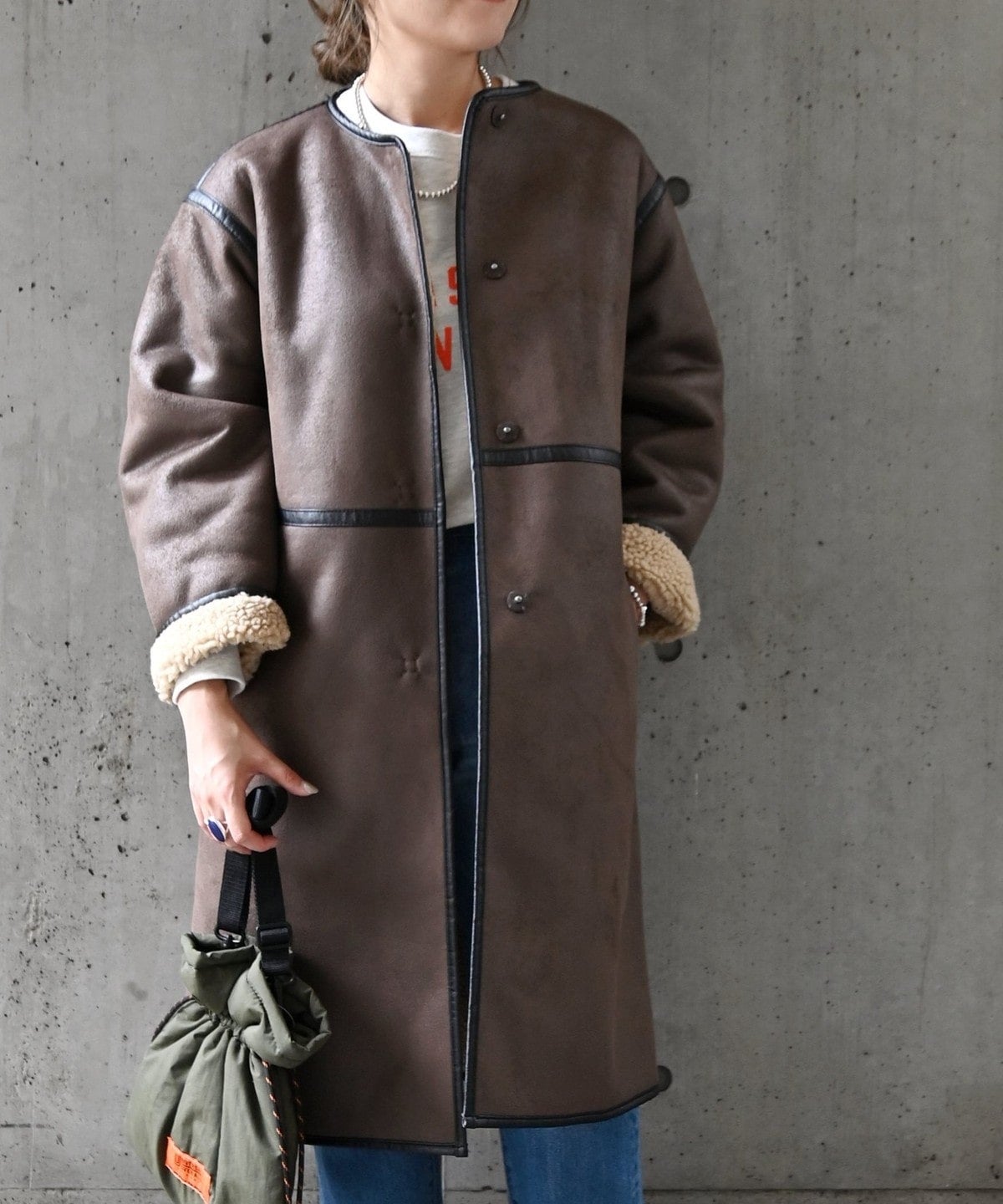 SHIPS any: フェイクムートン ノーカラー ロングコート
