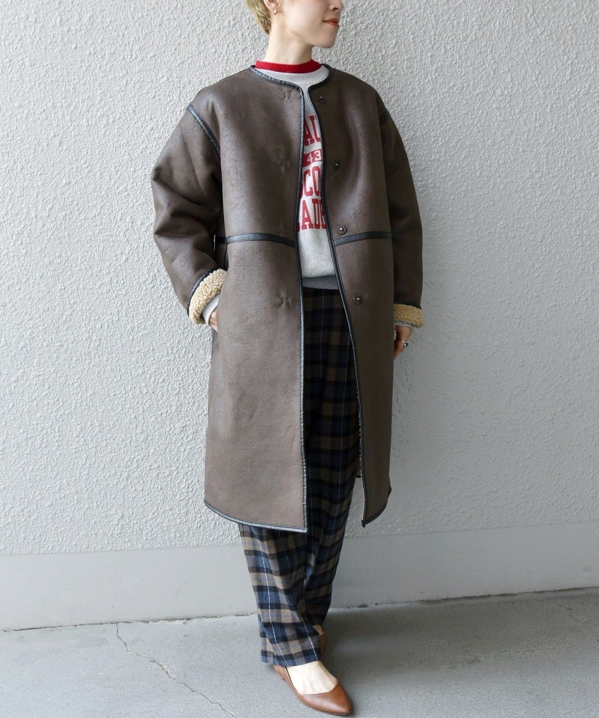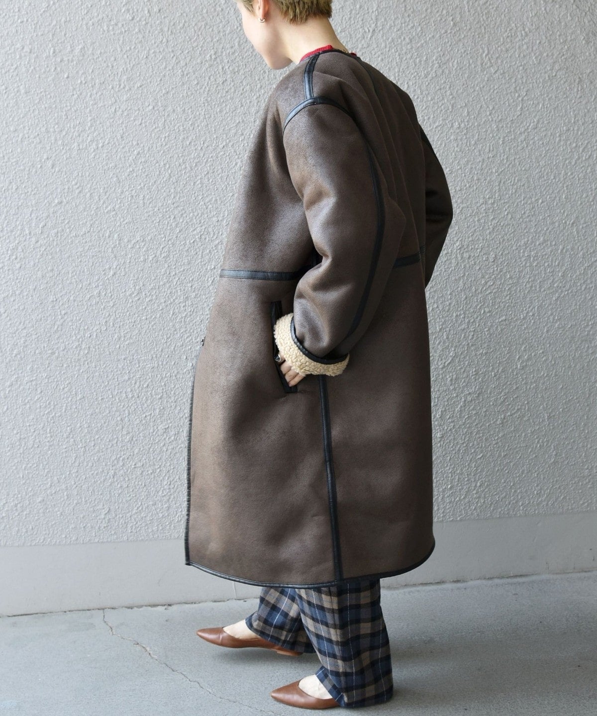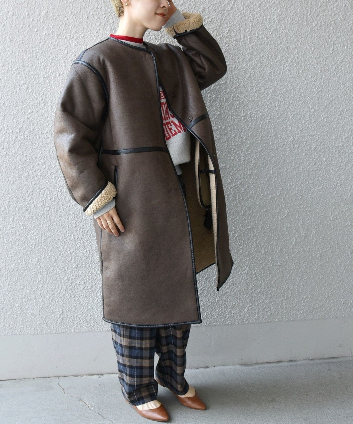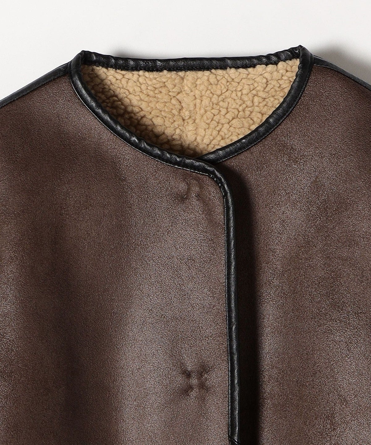 SHIPS any: フェイクムートン ノーカラー ロングコート