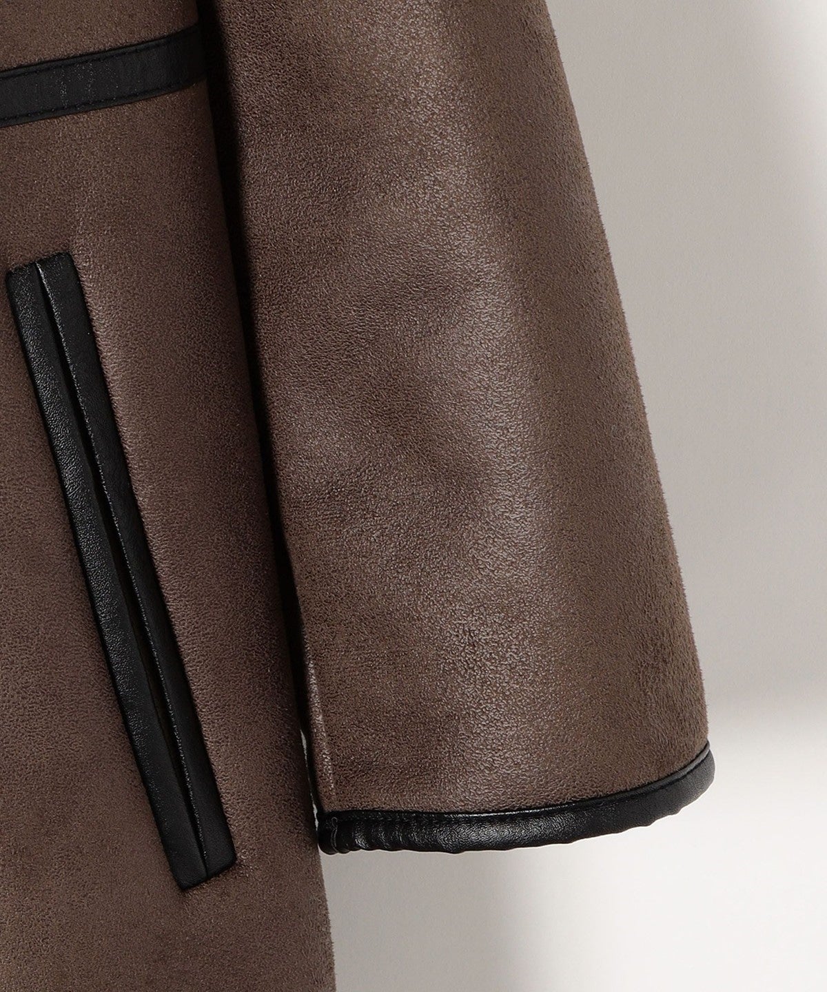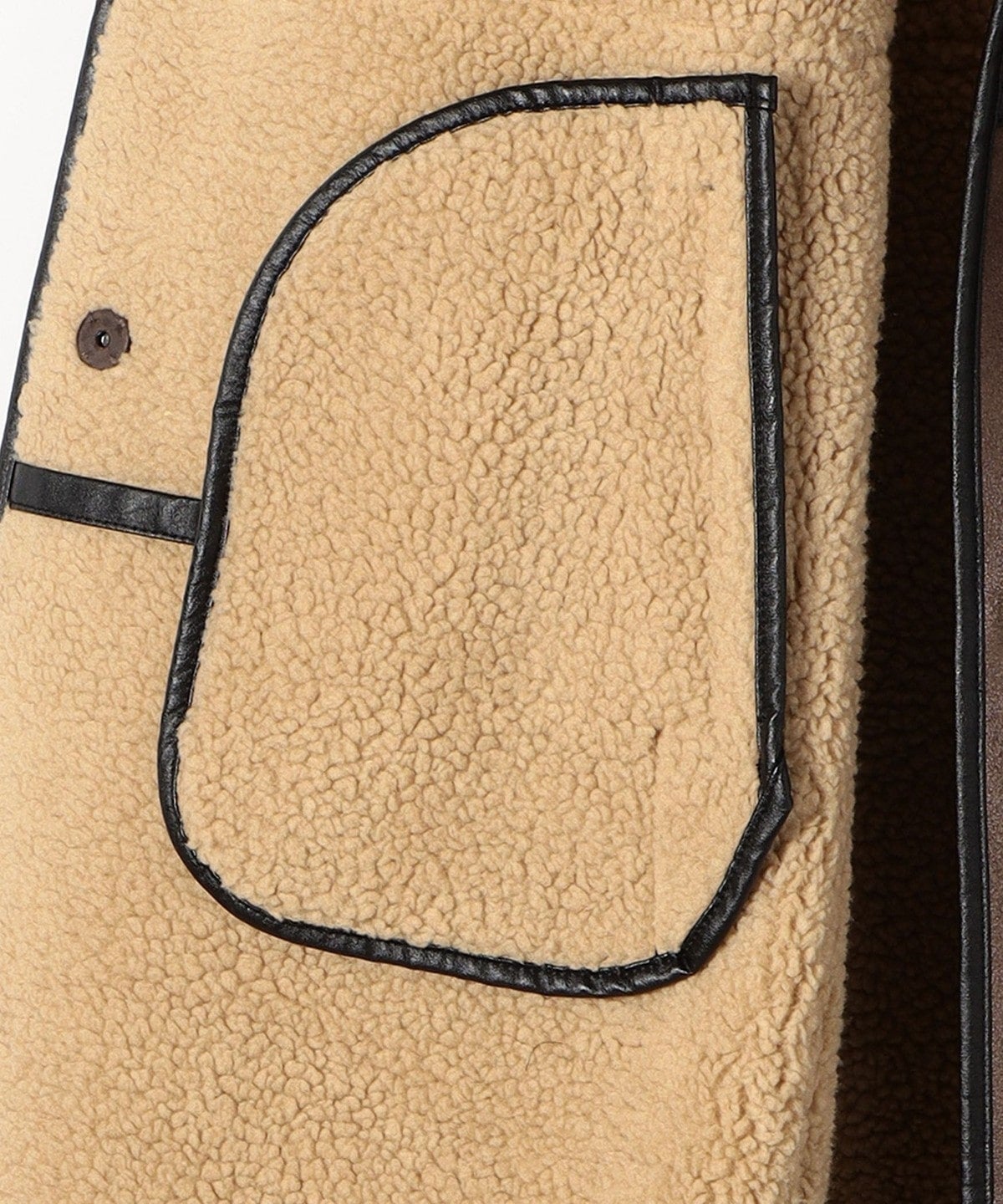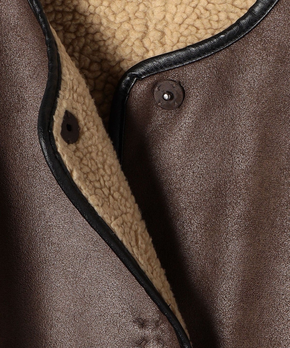 ヴィンテージ感のあるフェイクレザーと、温かみのあるボアをボンディングしたポリエステル100%のエコムートン素材を使用。