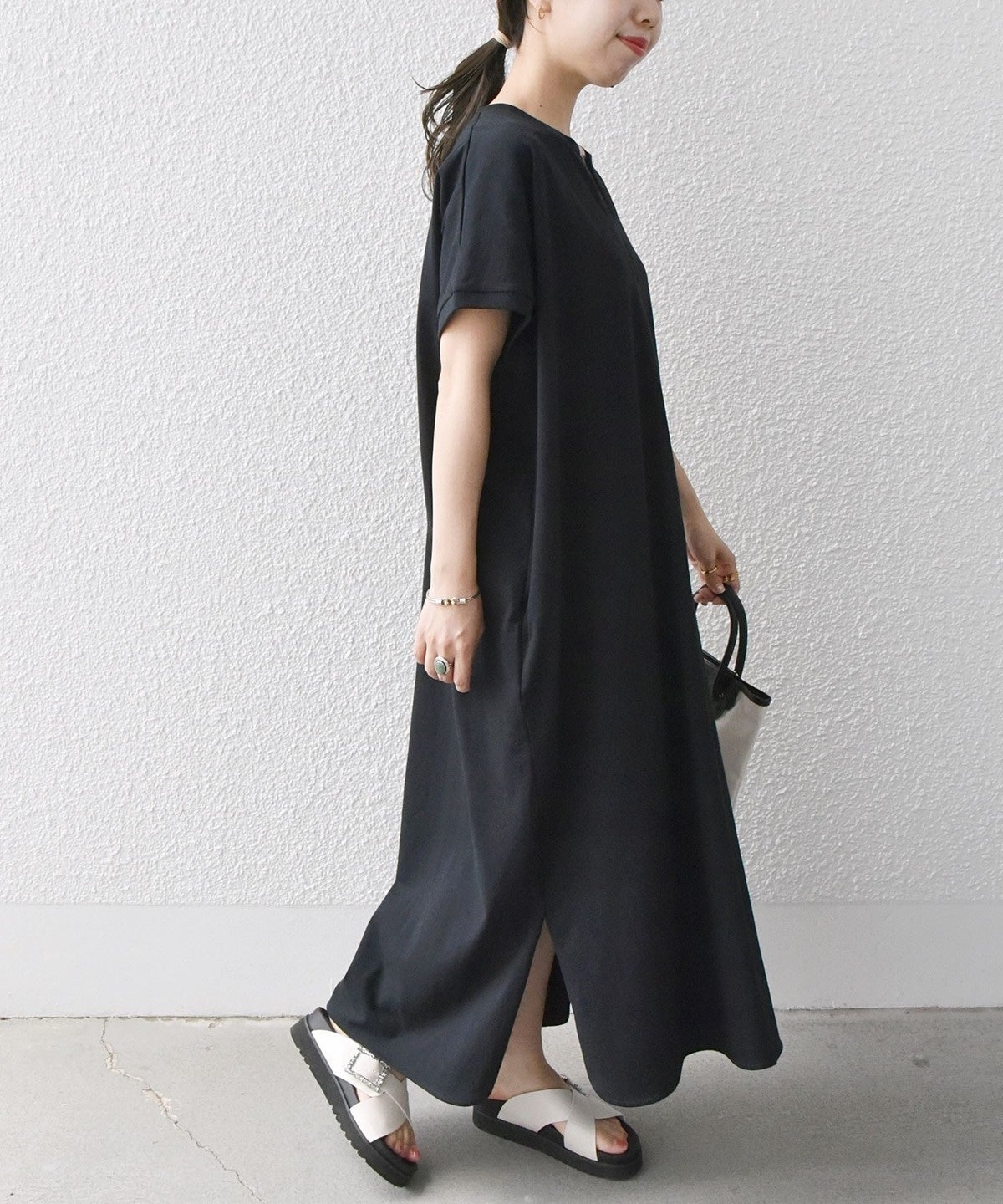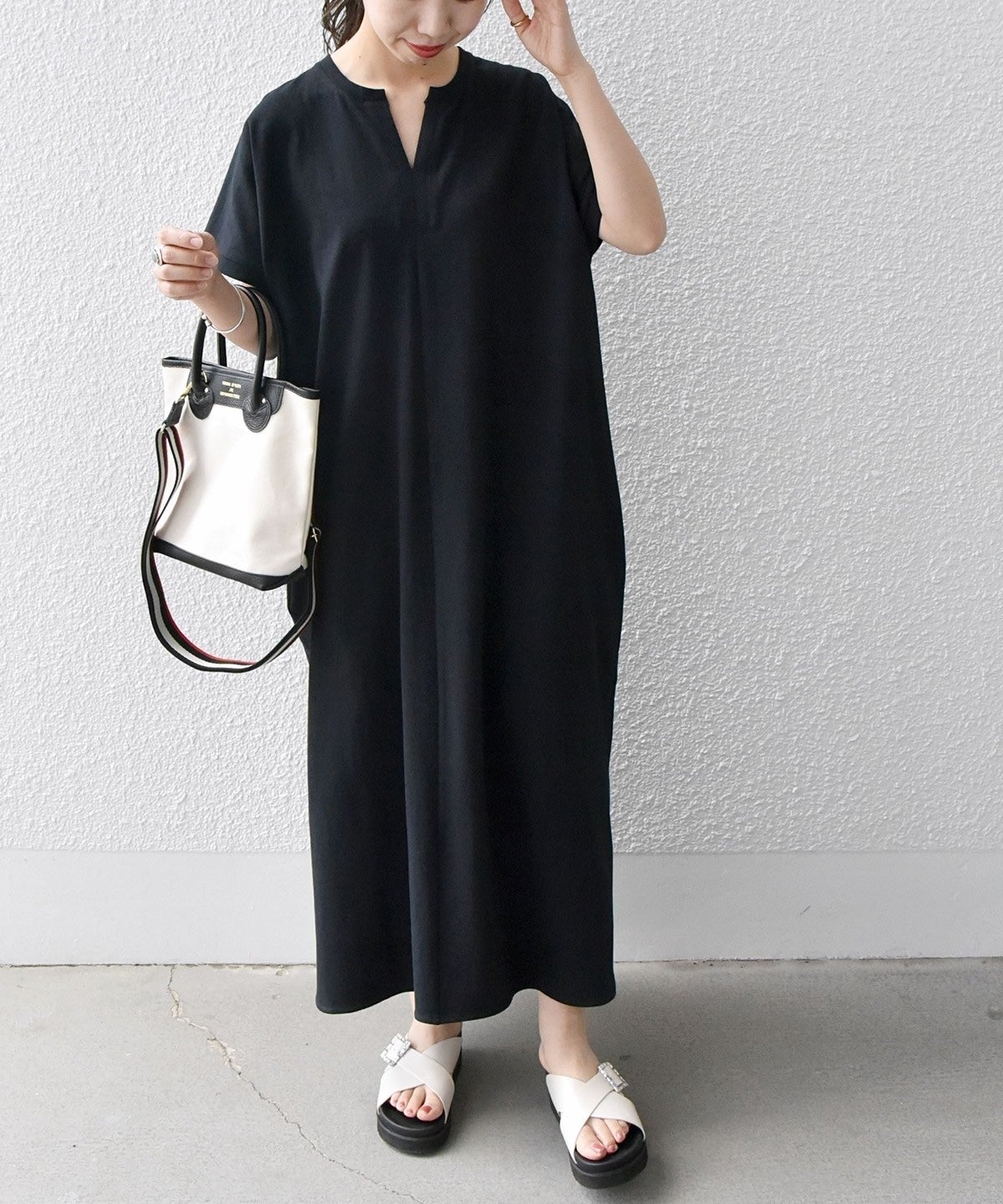 一枚で決まるワンピースなので、シューズやアクセサリーなど小物使いで自分らしい着こなしを楽しめます。