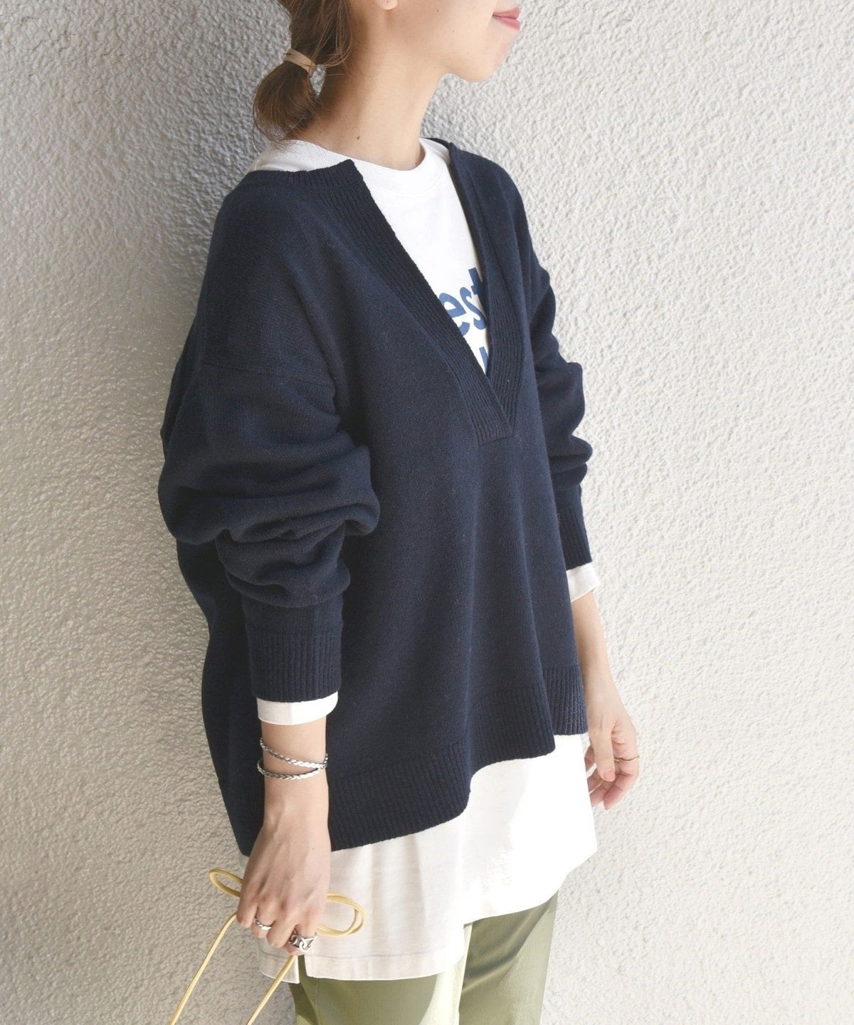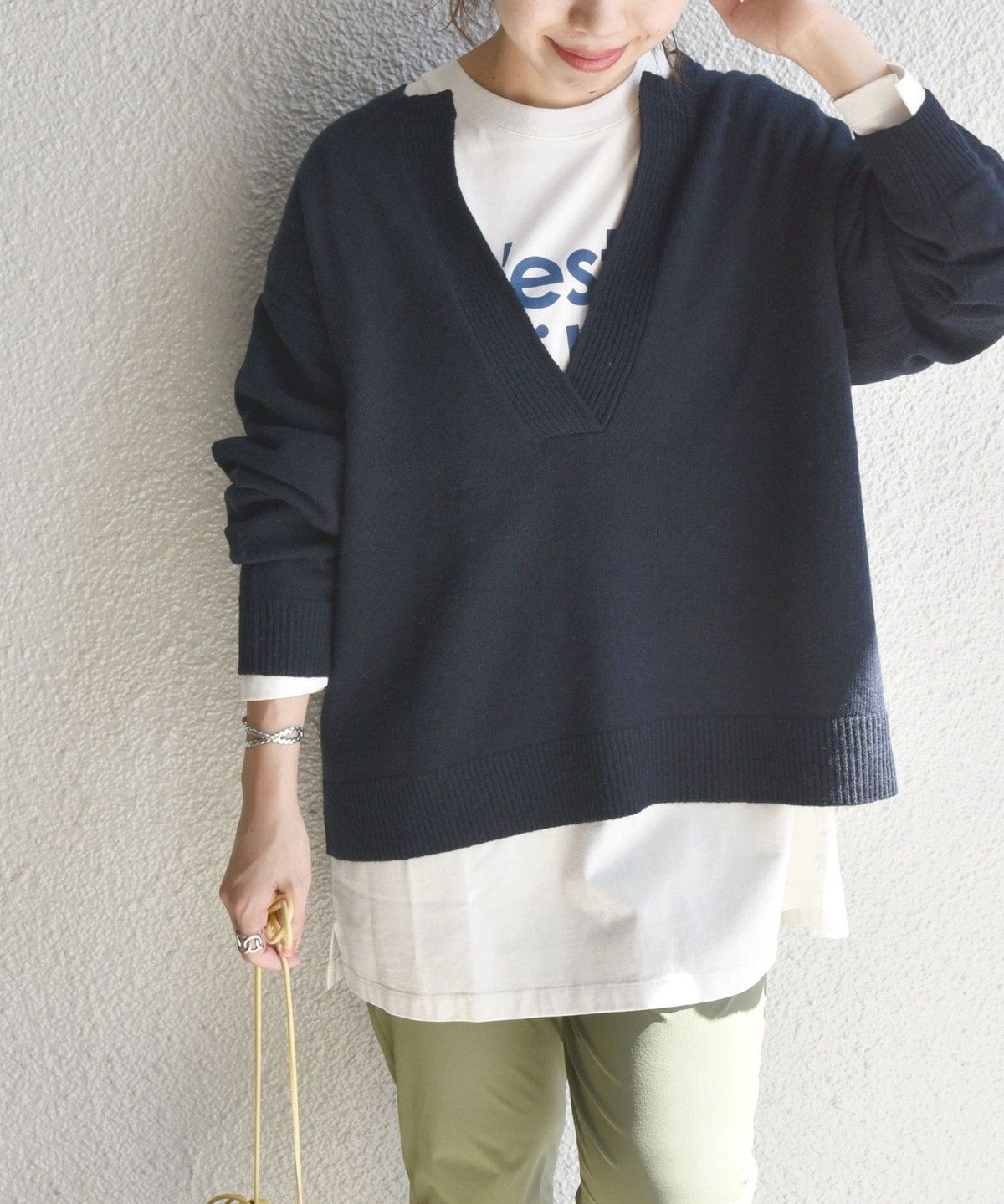 トレンド感のある長めのスリットをフロントに取ったキーネックのプルオーバー。