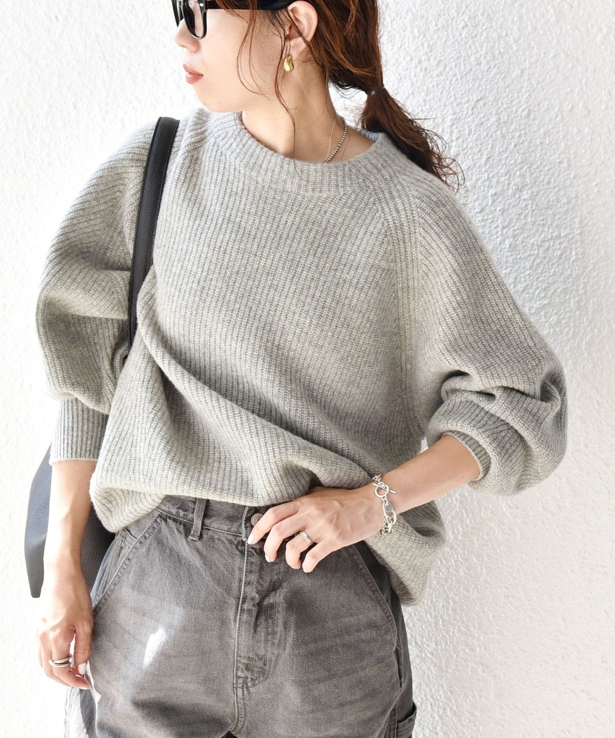 ゆったりとしたサイズ感でふんわりとボリュームがありながらも、縦の編地がすっきりと見せてくれます。