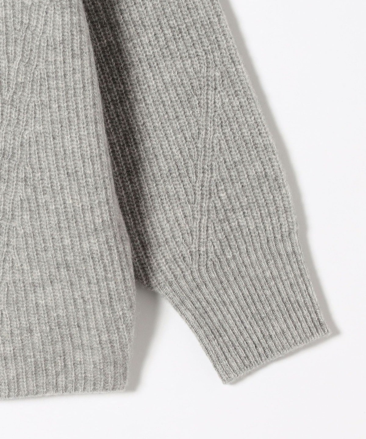 贅沢に畦組織で編んだ、プチハイネックのニットプルオーバー。