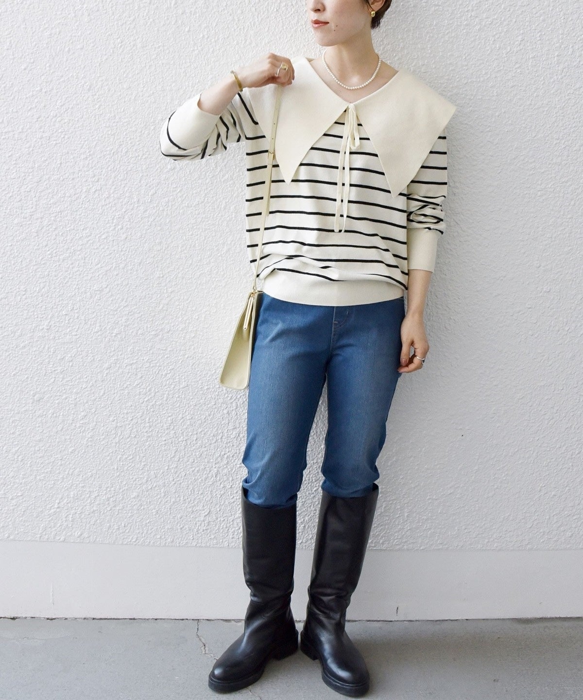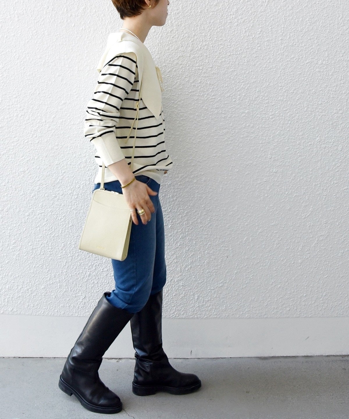 デニムでカジュアルにあわせるも良し、フェミニンなスカートとも好相性なので、あわせるボトムに悩みません。