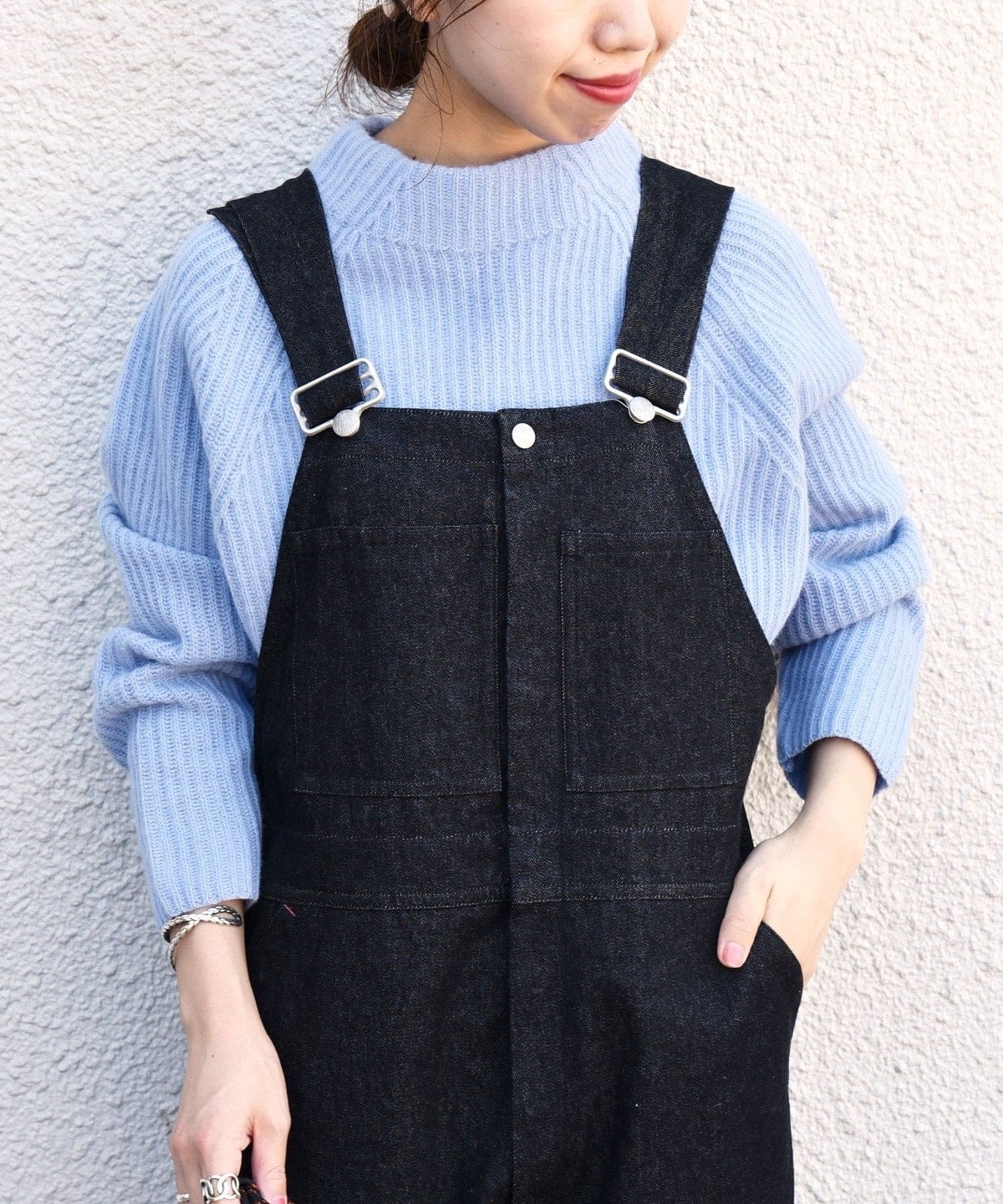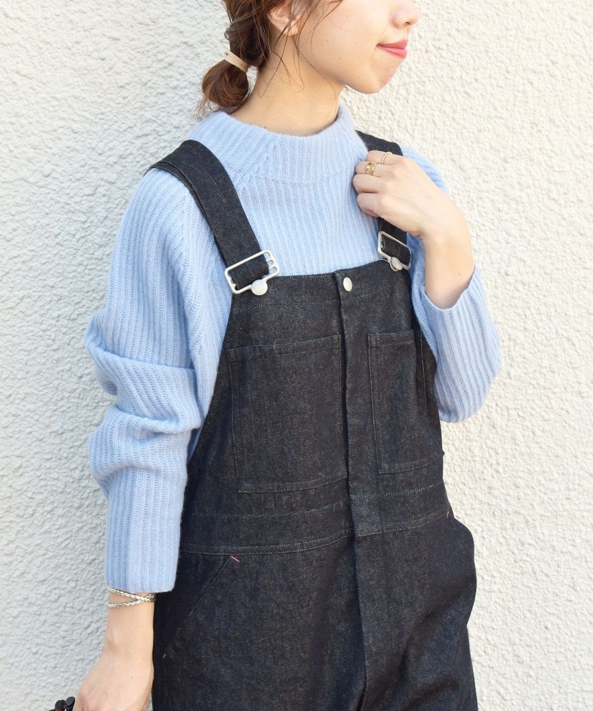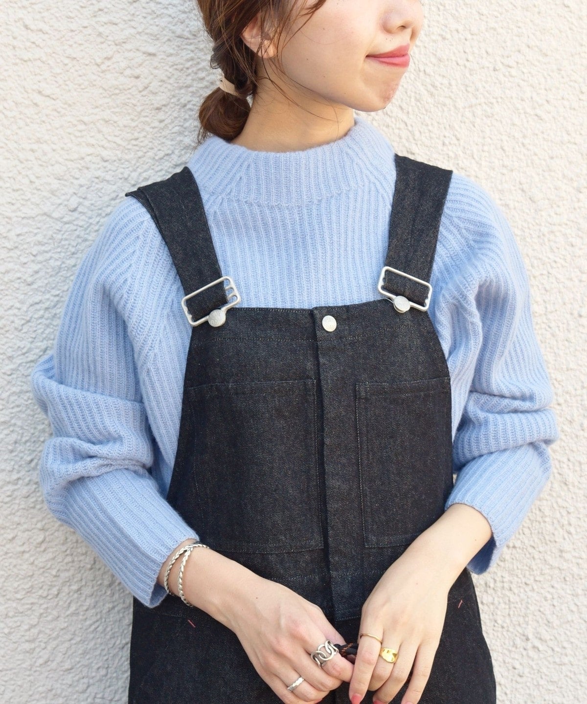 いつもと気分を変えたい時は、袖口フリルのブラウスやハイネックのインナーと合わせて、レイヤード部分をちらっと見せれば一気にフェミニンなスタイリングに早変わりです。