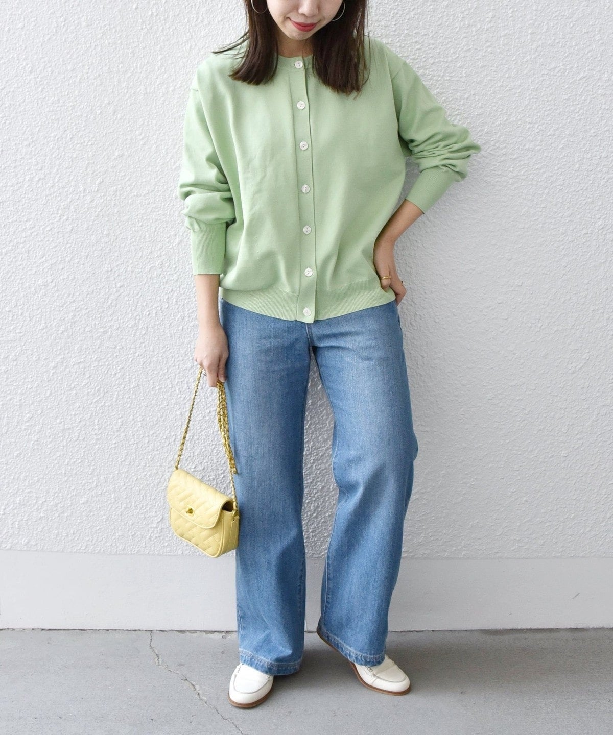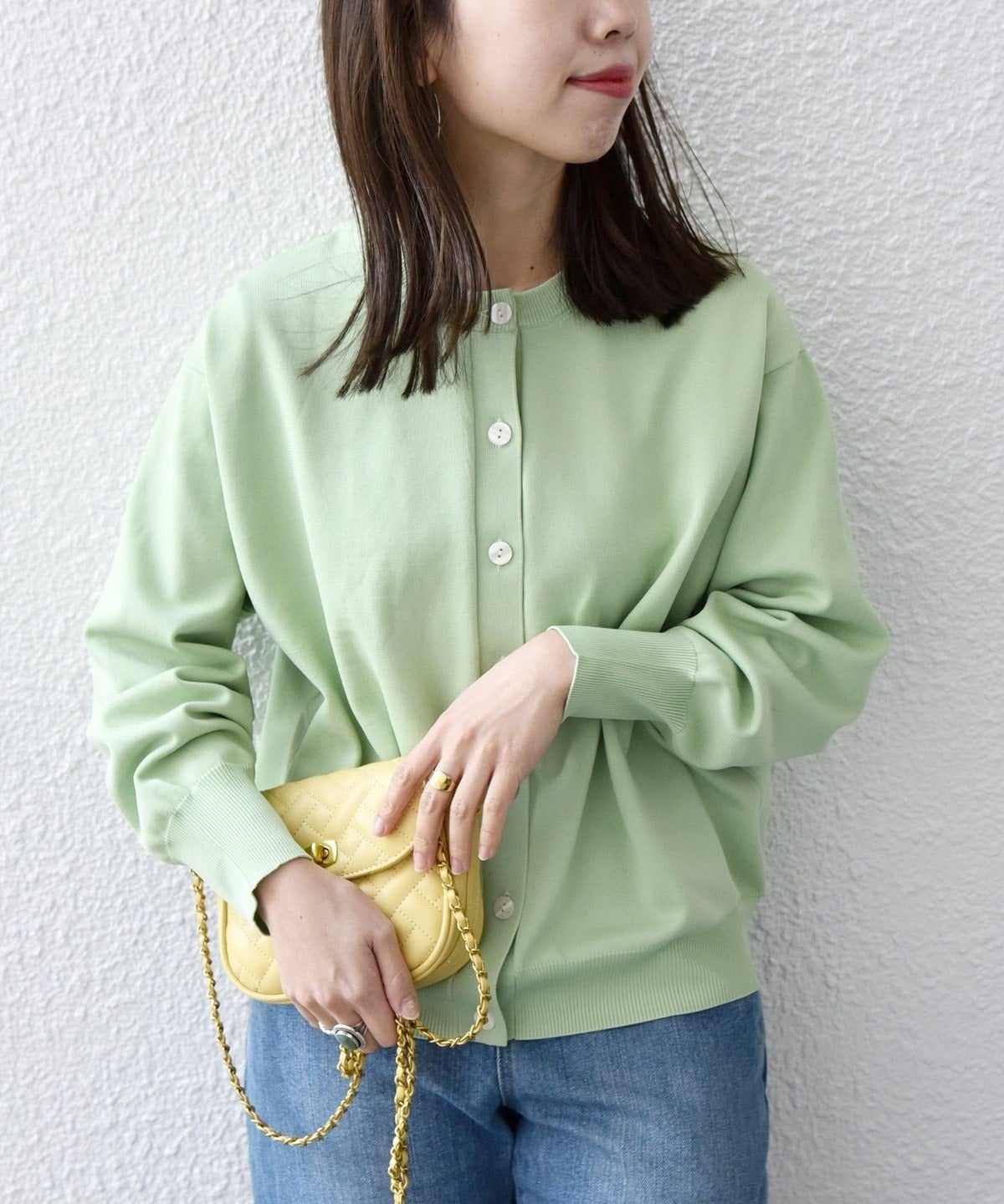 サラッとしたタッチと、厚みがあるのに軽い素材が春先の気温差にマッチするカーディガン。