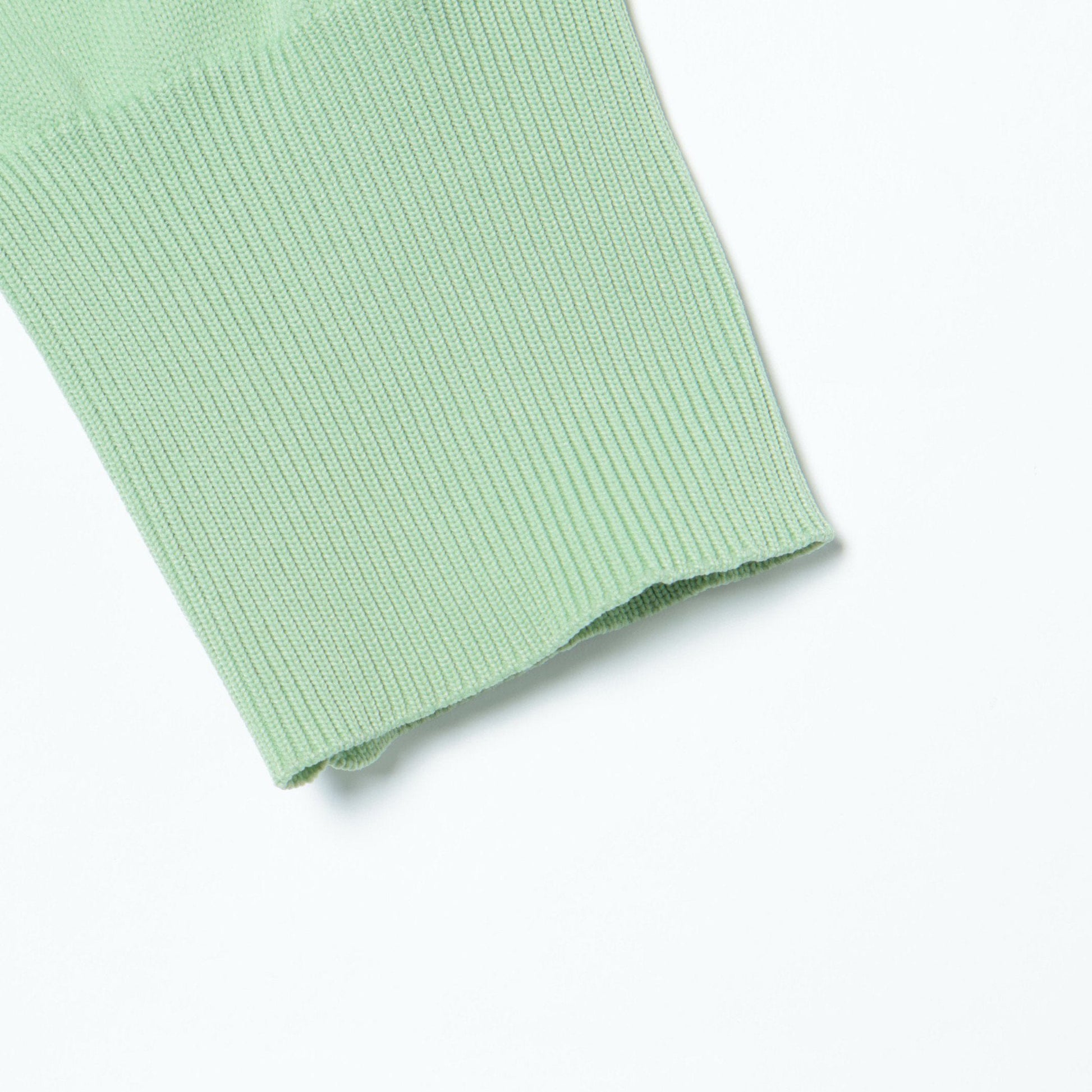 裾リブがキュッと身体に密着して細見えするので、ジャストウエストのボトムを着用してもバランスが取りやすくて◎