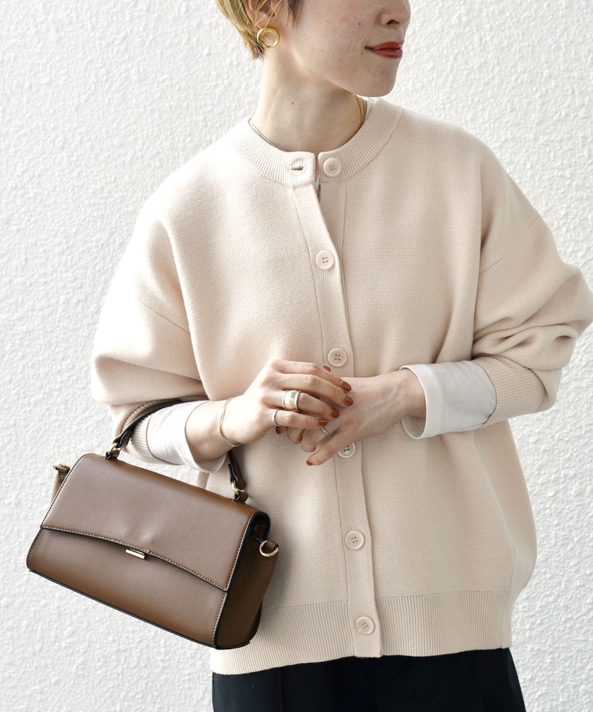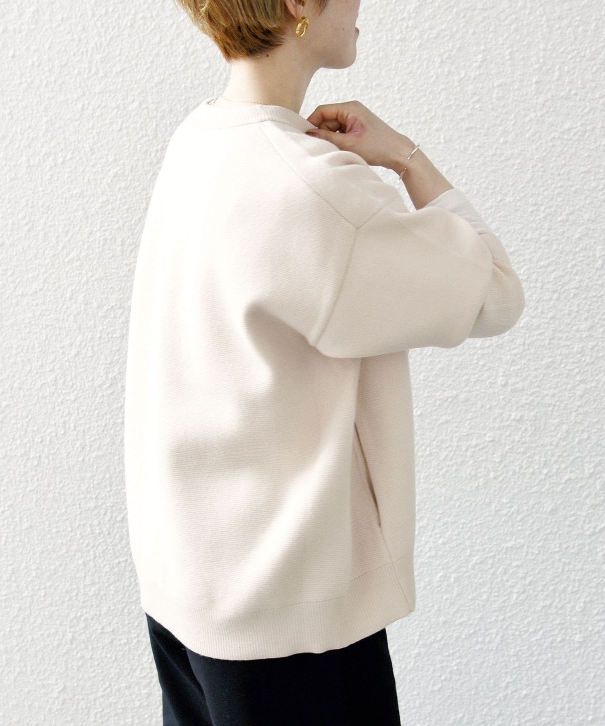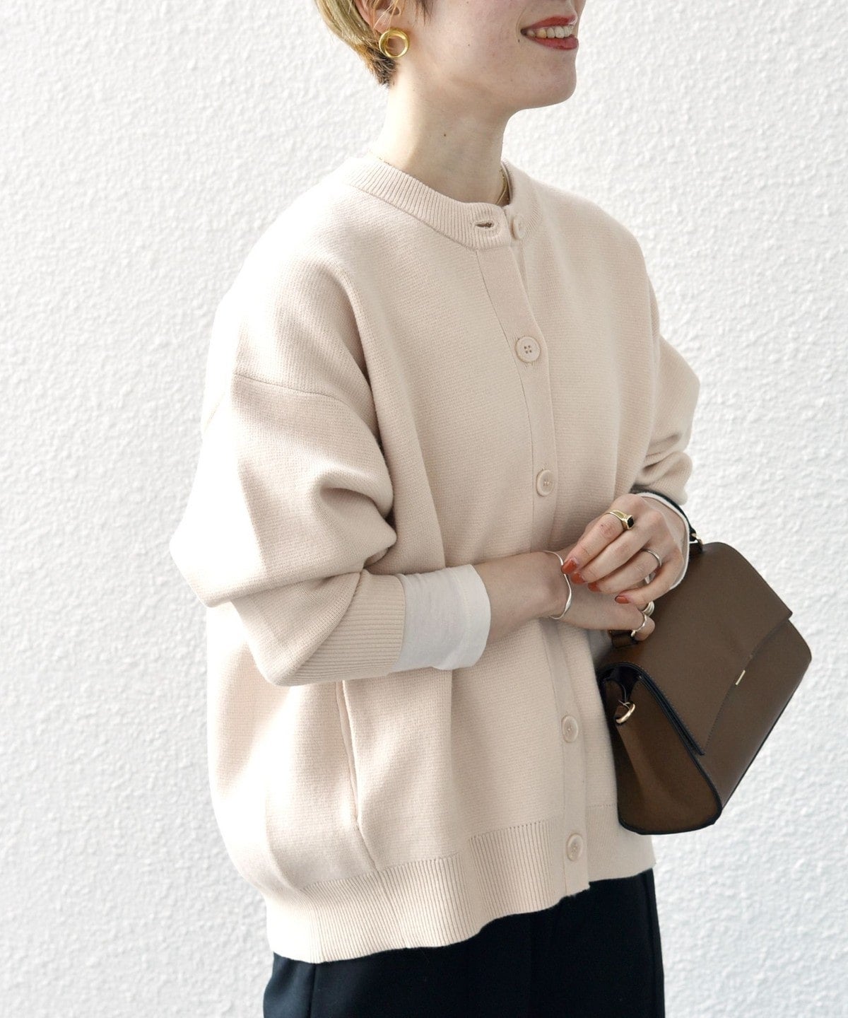 ゆったりとした身幅からコクーンシルエットに仕上げたクルーネックカーディガン。
