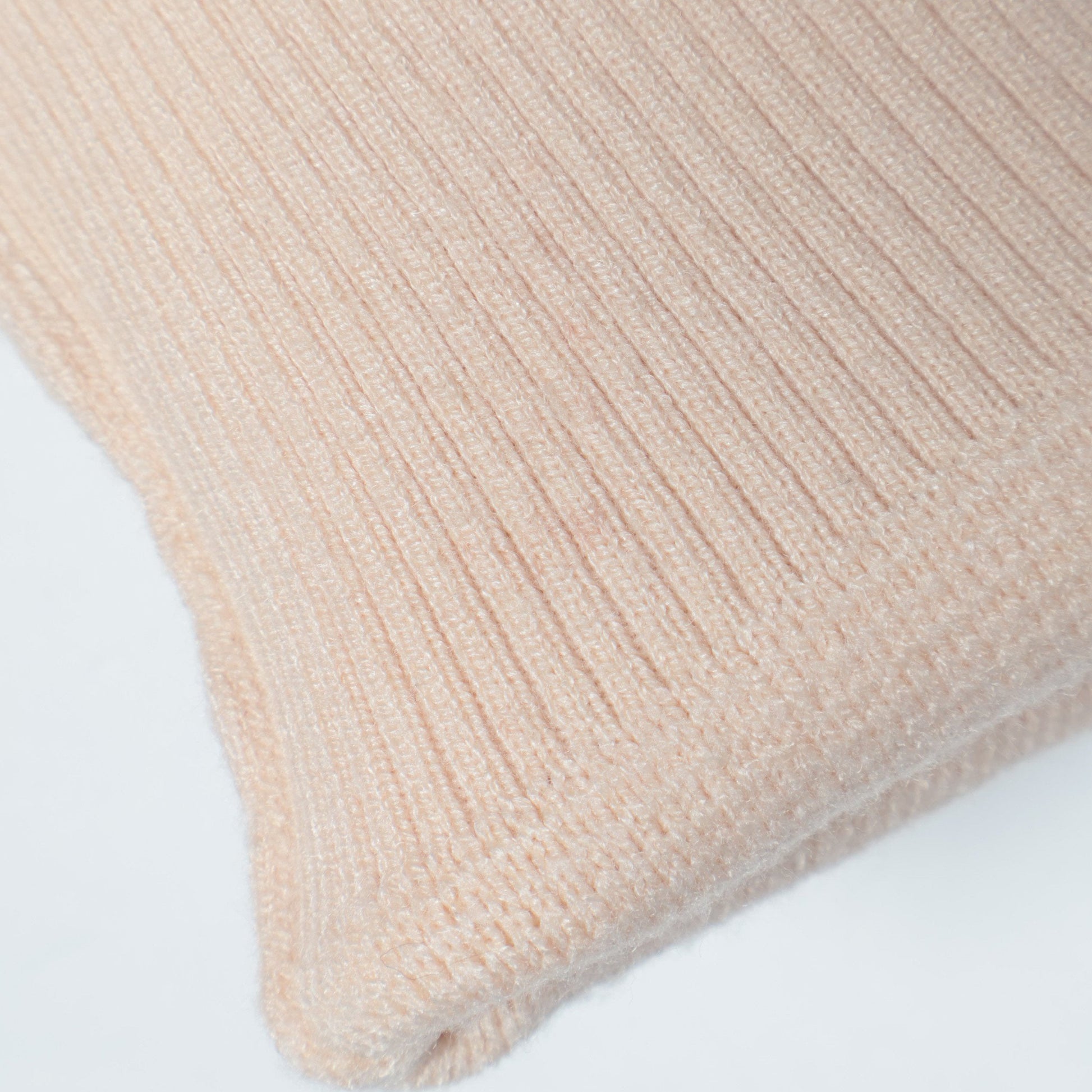 ミラノリブ編みで度目を詰め、時間をかけて丁寧に編んだ素材を使用。